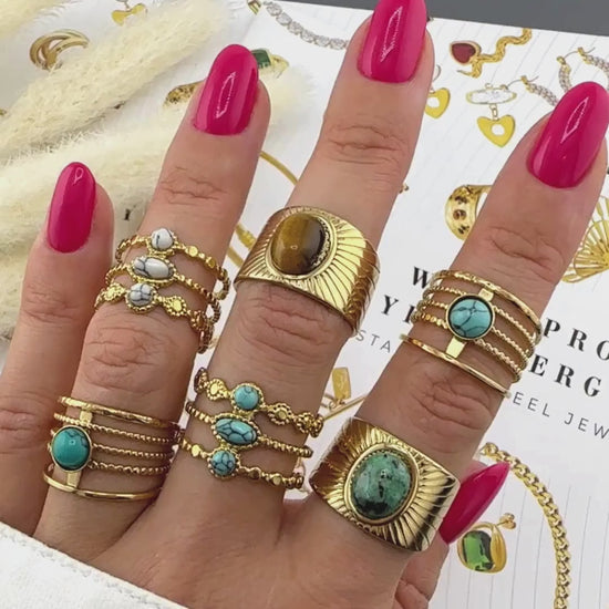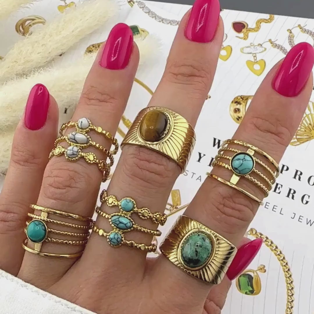 Embrace the essence of balance and elegance with The Amara Turquoise Harmony Set — a complete jewelry bundle featuring the Amara Necklace and Ring. Each piece is beautifully crafted in radiant 18K gold plating and highlighted with calming turquoise stones that symbolize peace, protection, and positive energy.