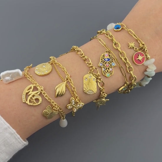 Celebrate the beauty of motherhood with the Amelia “Mom Love” Charm Bracelet — a radiant piece designed to honor every mom’s strength, grace, and love. Crafted with premium gold plating, this bracelet features a delicate layered chain adorned with elegant charms, including a heart engraved with “Mom,” a butterfly, a floral trinity, a teardrop pearl, and a white sandal charm — each symbolizing care, transformation, and warmth. Perfect for Mother’s Day, birthdays, or as a meaningful everyday keepsake, this bracelet adds a touch of sentiment and shine to any outfit.