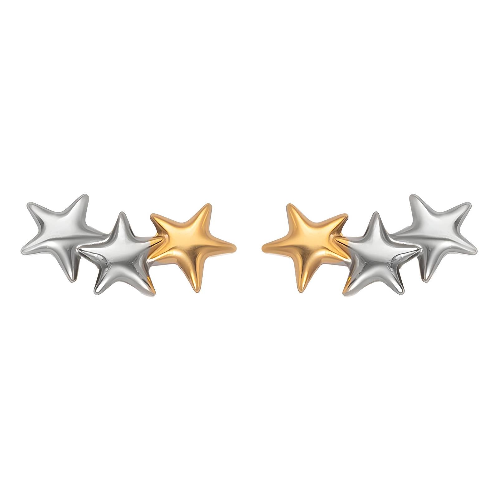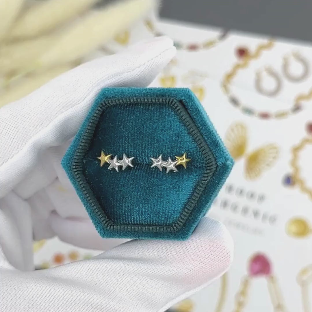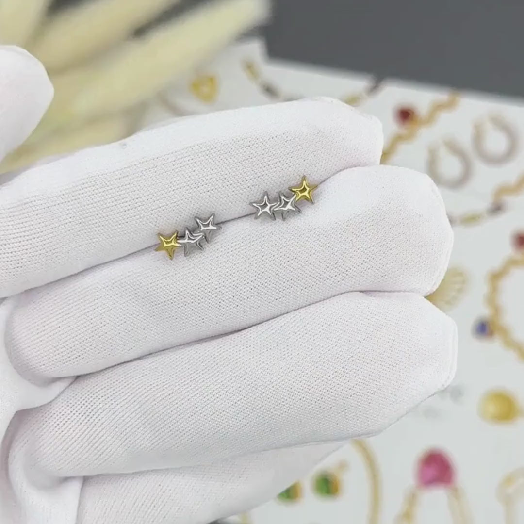 Elevate your everyday with the Celestia Tristar Studs—where stellar charm meets modern luxury. This radiant trio of stars, crafted in polished silver and gleaming gold, captures the magic of the cosmos in a refined, minimalist silhouette.