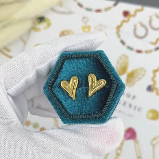 Our Golden Whisper Hearts are crafted for those who love quiet luxury. These small heart-shaped studs shine with minimalist charm, making them perfect for everyday wear or layering with other pieces.