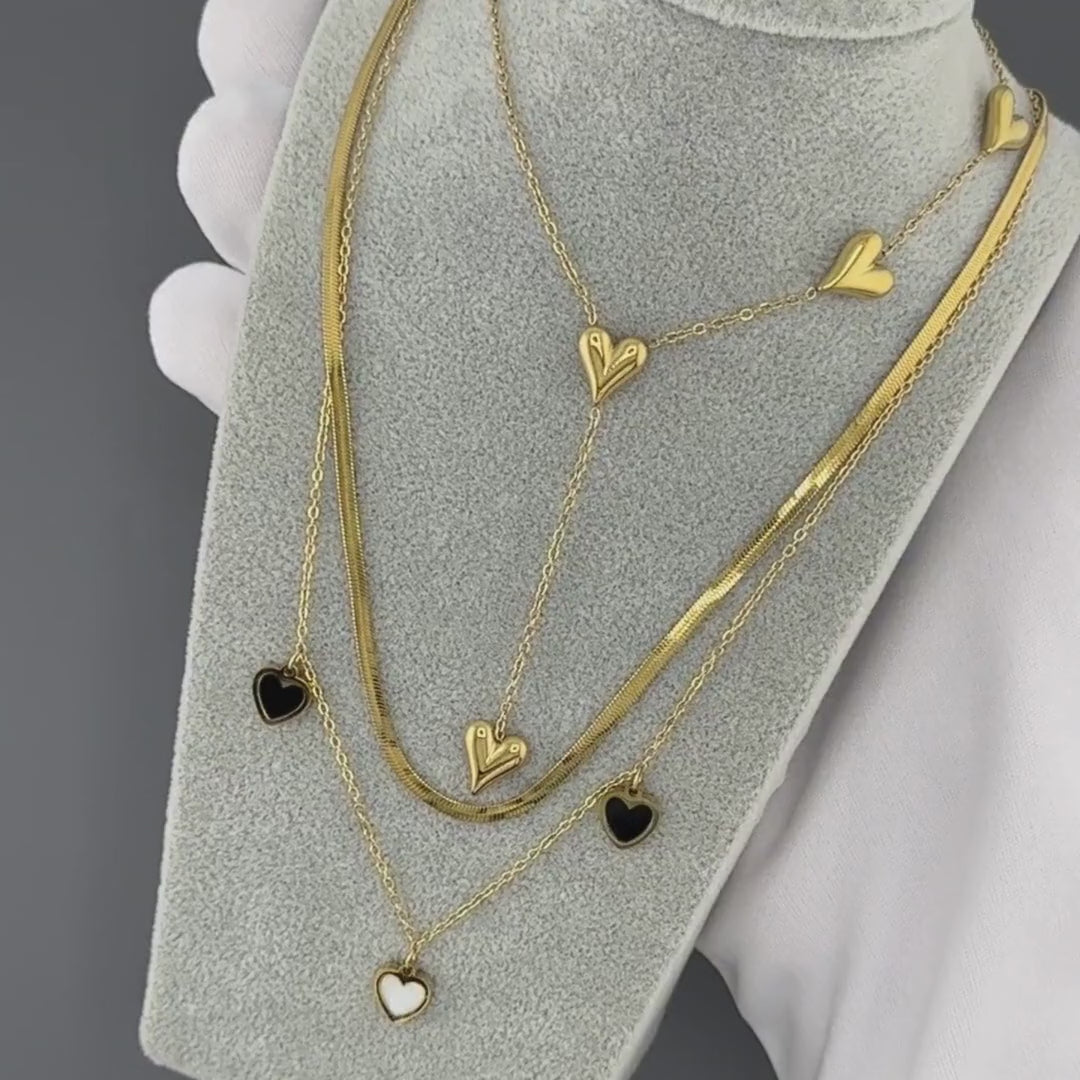 The Lila Four-Heart Necklace is a modern expression of love and effortless elegance. Designed with four sculpted gold hearts gracefully connected along a fine chain, this versatile piece lets you showcase your style your way.