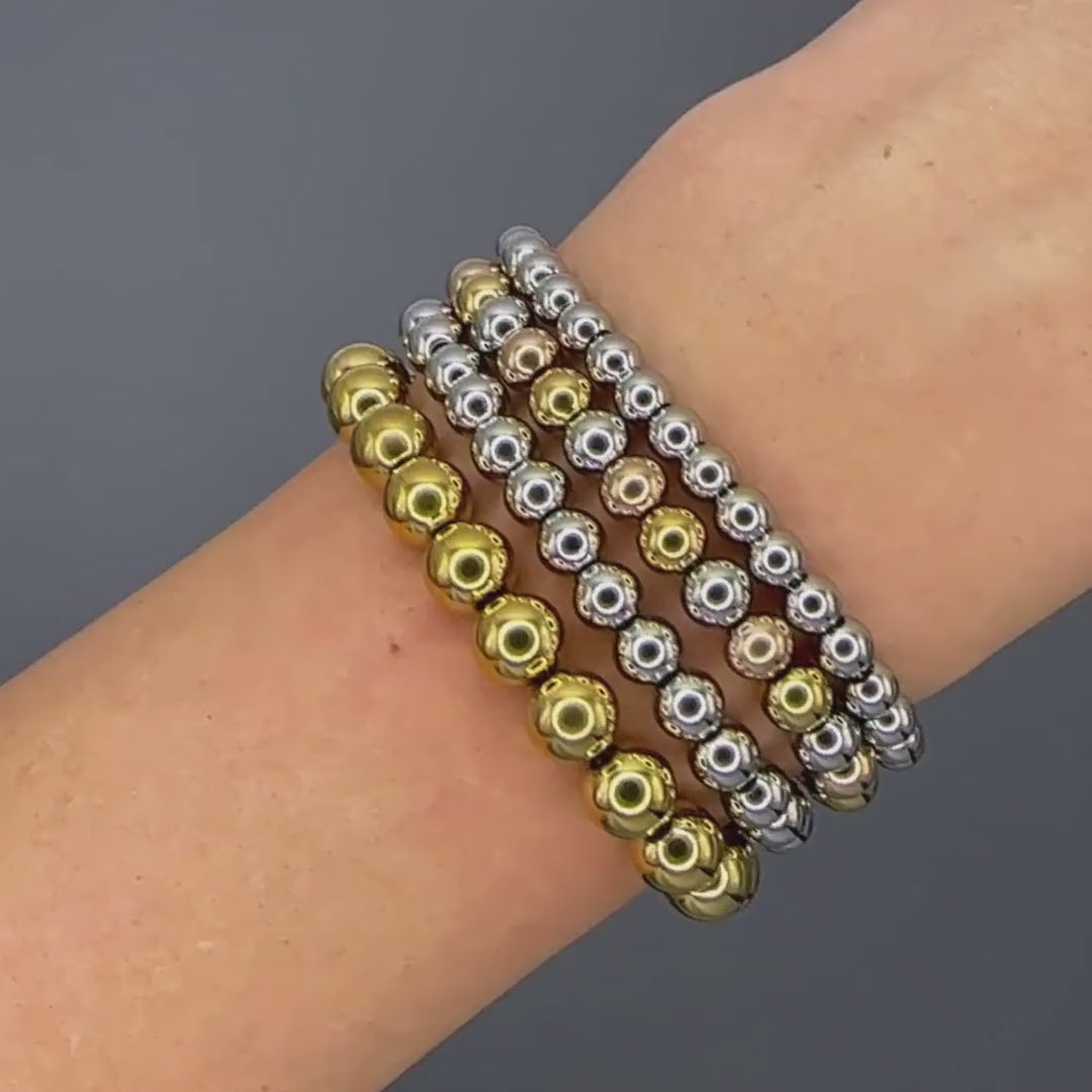 The Trinity Glow Bead Bracelet blends timeless elegance with modern minimalism. Featuring a seamless rhythm of gold, rose gold, and silver-toned spheres, this piece symbolizes harmony, balance, and radiance. Whether worn alone or layered, its polished, reflective finish captures the light—elevating your every move with quiet luxury.